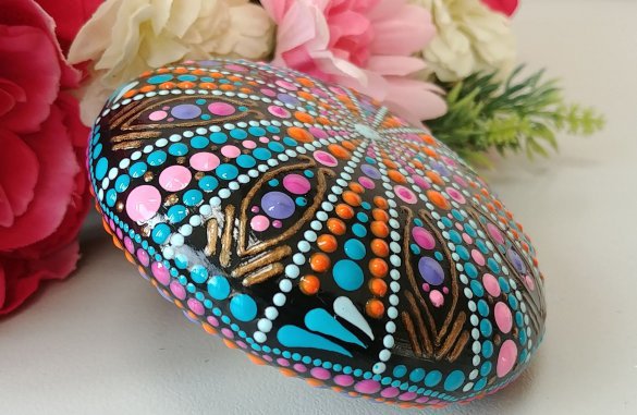 Ovale siersteen - dotart - nr. O2002 - made by Wilma