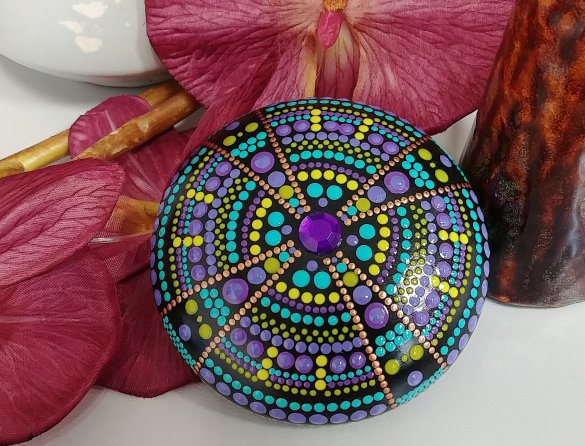 Ronde siersteen - dotart - nr. S2022 - made by Wilma